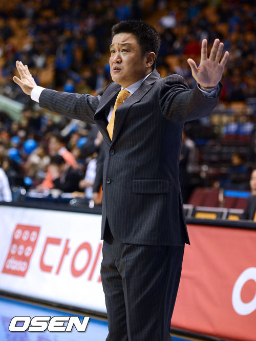 27일 오후 서울 잠실실내체육관에서 열린 'KB 국민카드 2012-2013 프로농구' 6강 플레이오프 서울 삼성과 인천 전자랜드의 경기 1쿼터 전자랜드 유도훈 감독이 작전 지시를 하고 있다