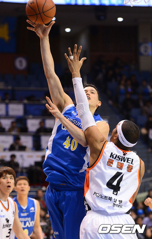 27일 오후 서울 잠실실내체육관에서 열린 'KB 국민카드 2012-2013 프로농구' 6강 플레이오프 서울 삼성과 인천 전자랜드의 경기 2쿼터 삼성 이동준이 훅슛 성공하고 있다