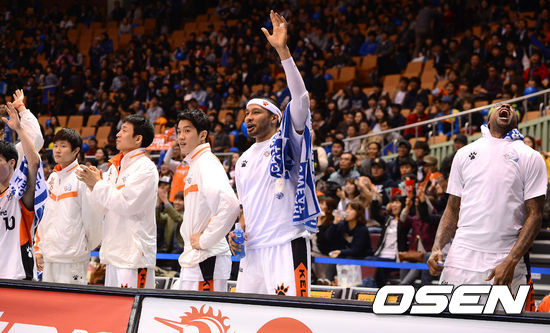 경기종료 직전 전자랜드 선수들이 환호하고 있다/soul1014@osen.co.kr