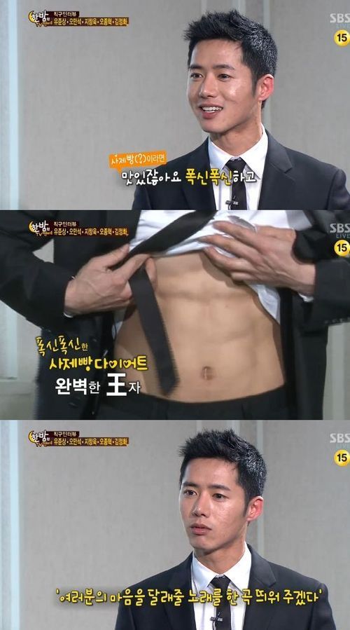 오종혁은 27일 방송된 SBS '한밤의 TV연예’에 출연해 “축복받은 체질이라 복근이 유지된다”며 조각 복근을 공개했다.