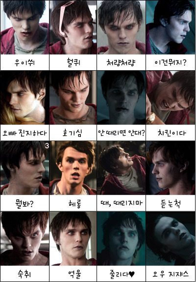 각종 포털사이트에서 연일 영화인 인기검색어 순위 1위를 차지하며 국내 여성 팬들의 지지를 받고 있는 꽃좀비 니콜라스 홀트의 다양한 표정을 모아놓은 '매력만점 표정 16종 세트'가 온라인에 등장해 화제를 모으고 있는 것.
