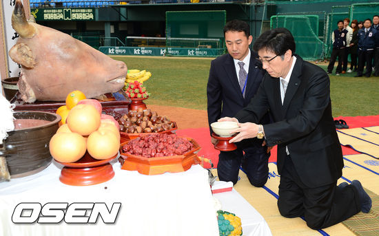 이날 고사는 올 시즌 개막을 앞두고 김승영 사장을 비롯해 김진욱 감독과 전 선수단, 임직원이 참석한 가운데 2013시즌 무사고 및 한국시리즈 우승을 기원한다.