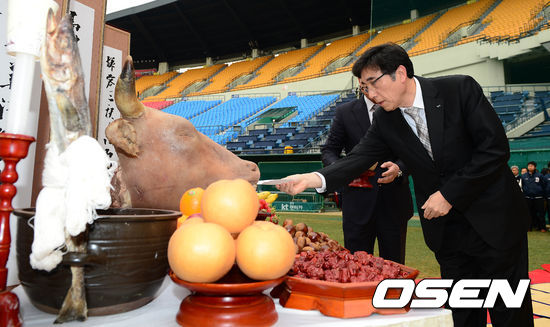 이날 고사는 올 시즌 개막을 앞두고 김승영 사장을 비롯해 김진욱 감독과 전 선수단, 임직원이 참석한 가운데 2013시즌 무사고 및 한국시리즈 우승을 기원한다.