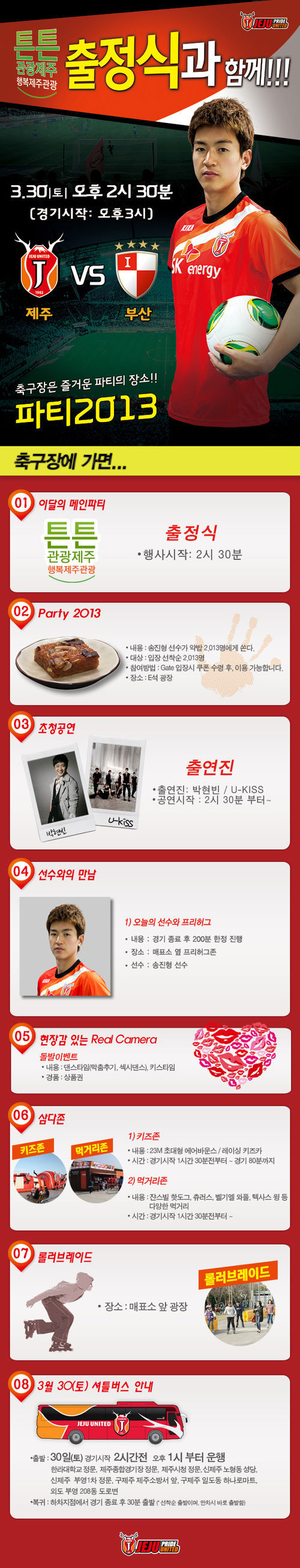 이날 경기를 놓칠 수 없는 또 하나의 이유는 제주도민과 함께 하는 축제의 한마당이 펼쳐지기 때문이다. 제주와 제주관광공사는 1000만 시대를 맞아 제주도민의 관광의식 선진화로 튼튼한 관광제주를 구현하고, 범도민적 축구붐 조성 및 확산을 위해 경기 시작 30분전부터 우승 기원 및 튼튼 관광제주 출정식을 개최한다