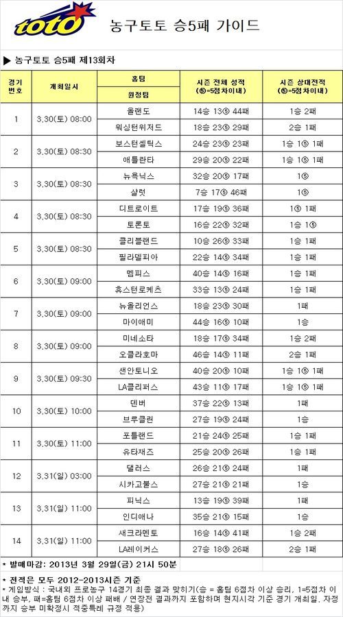 한편 농구토토 승5패 13회차 게임은 29일 오후 9시 50분에 발매가 마감된다.