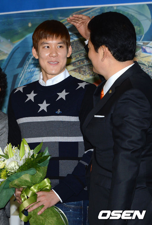 한국 수영의 '간판스타' 박태환은 송영길 인천시장, 아버지 박인호씨 등과 함께 참석했다.