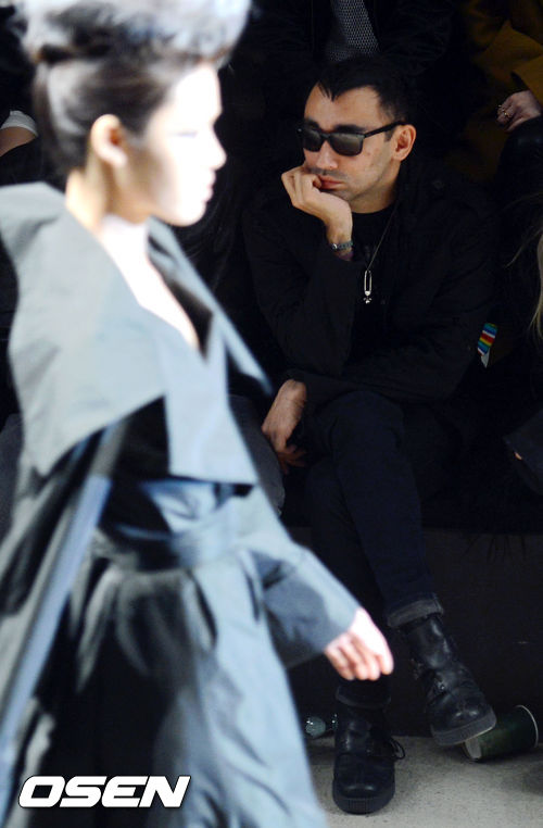 28일 오전 서울 여의도IFC에서 열린 '2013-14 F/W 서울패션위크' 강나영&강민조 디자이너 패션쇼를 찾은 레이디가가 스타일리스트 니콜라 포미체티가 패션쇼를 관람하고 있다.