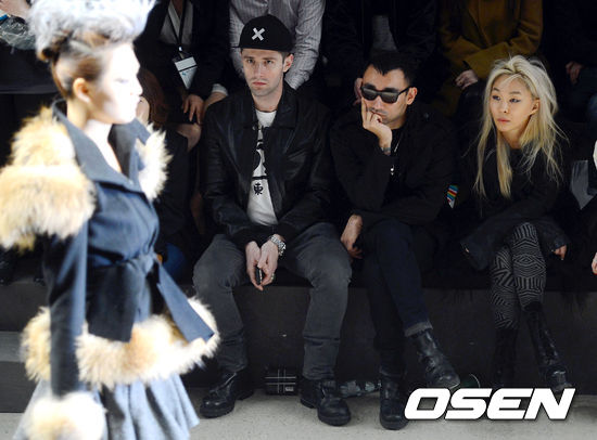 28일 오전 서울 여의도IFC에서 열린 '2013-14 F/W 서울패션위크' 강나영&강민조 디자이너 패션쇼를 찾은 레이디가가 스타일리스트 니콜라 포미체티가 패션쇼를 관람하고 있다.