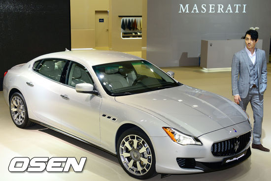 28일, 일산 킨텍스(KINTEX)에서 열린 ‘2013 서울모터쇼’ 프레스데이 행사에서 차승원이 마세라티 ‘올뉴 콰트로포르테’ 옆에서 포즈를 취하고 있다.