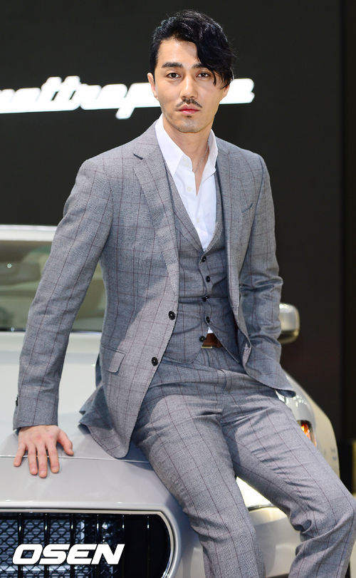 28일, 일산 킨텍스(KINTEX)에서 열린 ‘2013 서울모터쇼’ 프레스데이 행사에서 차승원이 마세라티 ‘올뉴 콰트로포르테’ 옆에서 포즈를 취하고 있다.