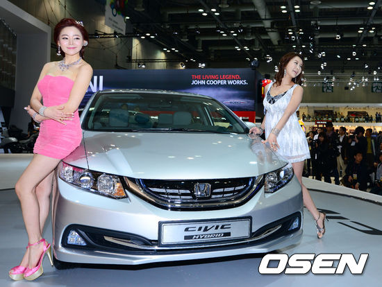 혼다 부스에서 시빅 하이브리드가 공개되고 있다.