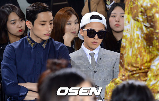 28일 오후 서울 여의도IFC에서 열린 '2013-14 F/W 서울패션위크' 계한희 패션쇼에 참석한 지드래곤과 이수혁이 패션쇼를 관람하고 있다.