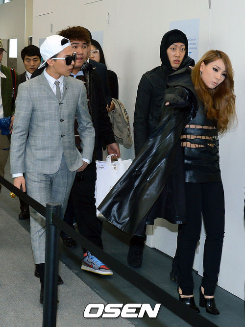 28일 오후 서울 여의도IFC에서 열린 '2013-14 F/W 서울패션위크' 계한희 패션쇼에 참석한 지드래곤과 씨엘이 패션쇼장을 빠져나가고 있다.