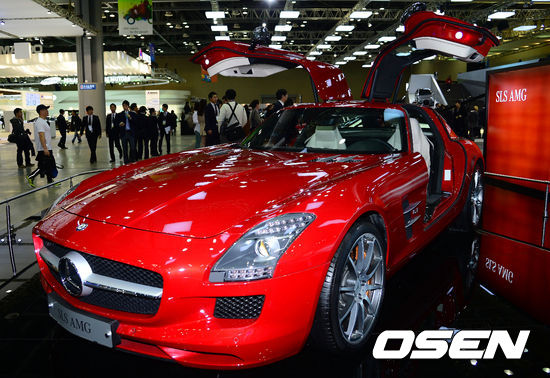 28일 일산 한국국제전시장(KINTEX, 이하 킨텍스)에서 열린 '2013서울모터쇼(Seoul Motor Show 2013)' 프레스데이에서 벤츠 SLS AMG를 공개했다.