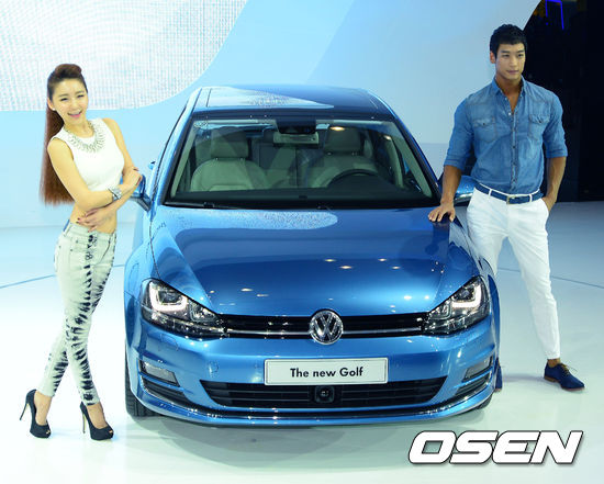 폭스바겐 부스에서 뉴 골프가 공개되고 있다.