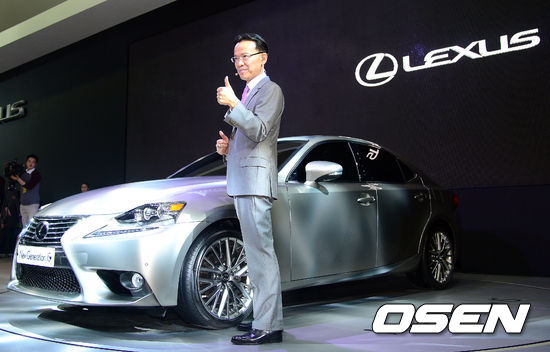 28일 일산 한국국제전시장(KINTEX, 이하 킨텍스)에서 열린 '2013서울모터쇼(Seoul Motor Show 2013)' 프레스데이에서 렉서스 뉴 제네레이션 IS를 공개, 렉서스 나카바야시 히사오 대표가 포즈를 취하고 있다.