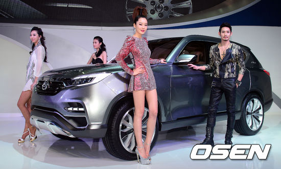28일 일산 한국국제전시장(KINTEX, 이하 킨텍스)에서 열린 '2013서울모터쇼(Seoul Motor Show 2013)' 프레스데이에서 쌍용 콘셉트카 SUV Liv-1을 공개 모델들이 차량을 선보이고 있다.