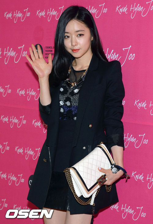 28일 오후 한남동 블루스퀘어에서 열린 '2013-14 F/W 서울패션위크' 곽현주 패션쇼에 참석한 홍수아가 포토타임을 갖고 있다.