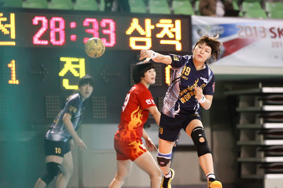 삼척은 인천의 높은 수비벽에 막혀 제대로 된 슛조차 날리지 못 했다. 하지만 후반 중반을 넘어서면서 삼척의 대반격이 시작됐다. 정지해의 추격골과 우선희의 인터셉트에 이은 속공으로 두 점 차까지 쫓아간 삼척은 우선희가 7미터 던지를 얻어내며 신은주를 2분간 퇴장으로 내보내고 정지해가 7미터 던지기를 성공, 1점 차까지 따라갔다.