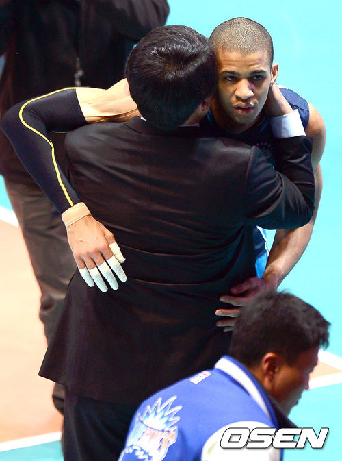 경기종료 후 삼성화재 신치용 감독이 레오와 포옹을 하고 있다/ soul1014@osen.co.kr