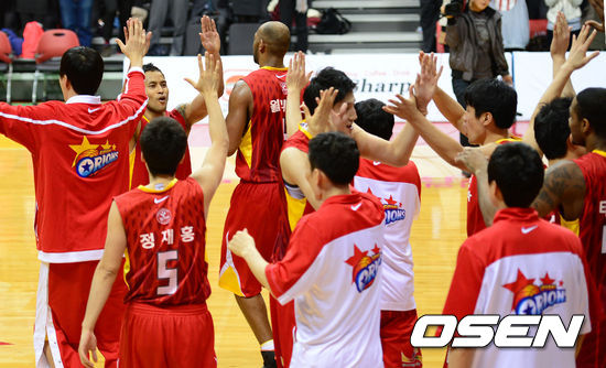 고양 오리온스는 28일 고양체육관에서 열린 2012-2013 KB국민카드 프로농구 6강 플레이오프(PO) 4차전서 안양 KGC인삼공사를 72-65로 꺾고 시리즈 전적 2승 2패로 균형을 이뤘다.