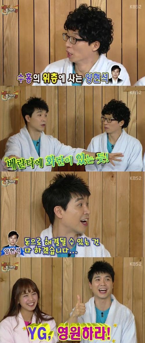 박수홍은 “7년 산 아파트의 대리석을 양현석이 다 갈아줬다. 역시 YG다”고 활짝 웃으며 엄지 손가락을 들었고 이 이야기를 알고 있는 게스트들은 “새집이 됐다고 자랑하더라”고 거들어 눈길을 끌었다.