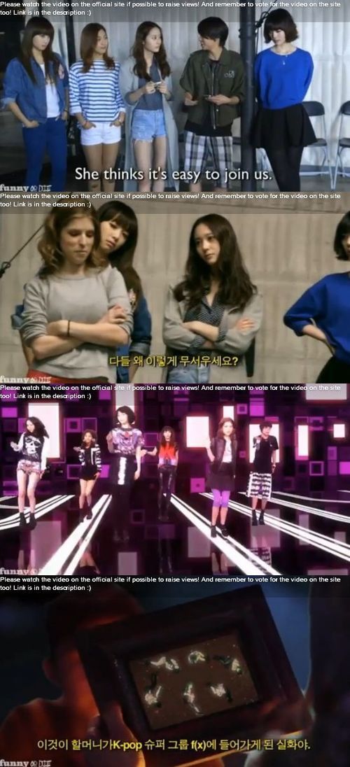 에프엑스는 28일 오후 6시(한국 시간) 공개된 ‘퍼니 오아 다이(FUNNY OR DIE)’에 출연해 헐리우드 배우 안나 켄드릭(Anna Kendrick)이 함께 코믹 연기를 선보였다.