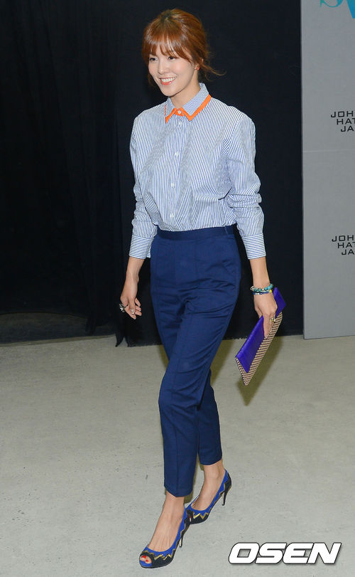 28일 오후 여의도 IFC서울에서 열린 '2013-14 F/W 서울패션위크' 최지형 디자이너 패션쇼에 참석한 김성은이 포토월을 빠져나가고 있다.