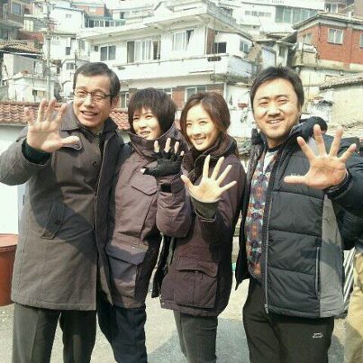 사진 속 마동석과 김선아는 '더 파이브'를 함께 촬영 중인 배우 이청아, 정인기와 함께 다정하게 사진을 찍고 있다. 특히 신인그룹처럼 손바닥을 쫙 편 채 환하게 웃고 있어 시선을 모은다.