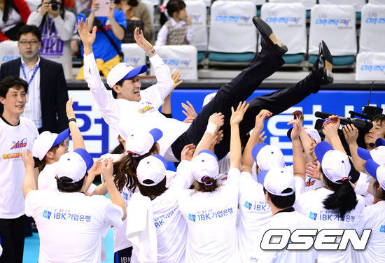 IBK기업은행은 29일 구미박정희체육관에서 열린 NH농협 2012-2013시즌 V리그 여자부 챔피언결정전 4차전 GS칼텍스와 경기서 세트스코어 3-1(25-18, 20-25, 25-19, 25-21)로 승리를 거두고 우승을 차지했다. 창단 2년만에 거둔, V리그 여자부 '막내'의 쾌거였다.