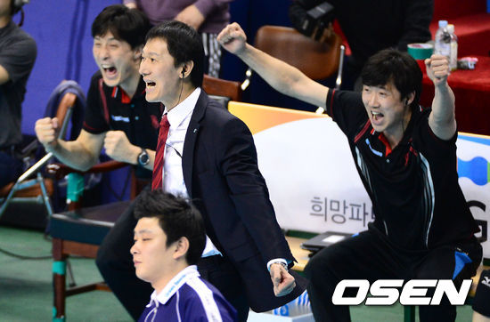 경기 종료 후 IBK기업은행 이정철 감독이 기쁨의 환호를 하고 있다. /sunday@osen.co.kr