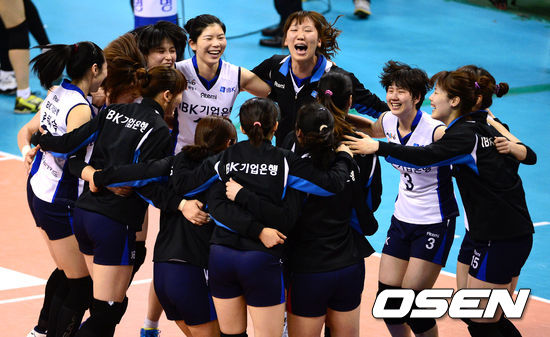 IBK기업은행은 29일 구미박정희체육관에서 열린 NH농협 2012-2013시즌 V리그 여자부 챔피언결정전 4차전 GS칼텍스와 경기서 세트스코어 3-1(25-18, 20-25, 25-19, 25-21)로 승리를 거두고 우승을 차지했다. 창단 2년만에 거둔, V리그 여자부 '막내'의 쾌거였다.