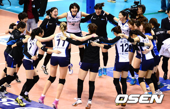IBK기업은행은 29일 구미박정희체육관에서 열린 NH농협 2012-2013시즌 V리그 여자부 챔피언결정전 4차전 GS칼텍스와 경기서 세트스코어 3-1(25-18, 20-25, 25-19, 25-21)로 승리를 거두고 우승을 차지했다. 창단 2년만에 거둔, V리그 여자부 '막내'의 쾌거였다.