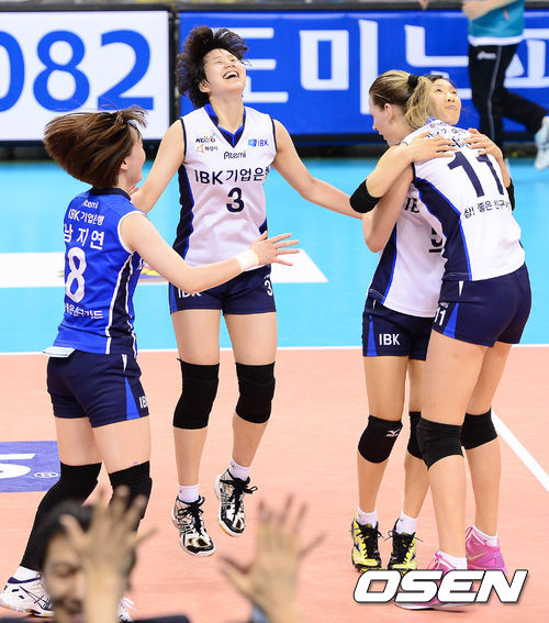 IBK기업은행은 29일 구미박정희체육관에서 열린 NH농협 2012-2013시즌 V리그 여자부 챔피언결정전 4차전 GS칼텍스와 경기서 세트스코어 3-1(25-18, 20-25, 25-19, 25-21)로 승리를 거두고 우승을 차지했다. 창단 2년만에 거둔, V리그 여자부 '막내'의 쾌거였다. / baik@osen.co.kr