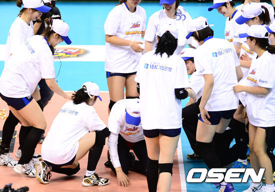 IBK기업은행은 29일 구미박정희체육관에서 열린 NH농협 2012-2013시즌 V리그 여자부 챔피언결정전 4차전 GS칼텍스와 경기서 세트스코어 3-1(25-18, 20-25, 25-19, 25-21)로 승리를 거두고 우승을 차지했다. 창단 2년만에 거둔, V리그 여자부 '막내'의 쾌거였다.