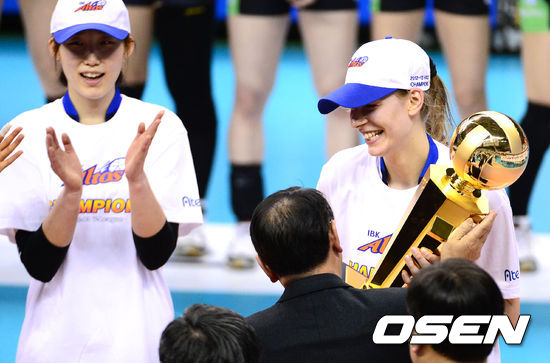 경기 종료 후 IBK기업은행 알레시아가 우승 트로피를 전달받고 있다. /sunday@osen.co.kr