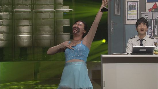 그는 30일 방송되는 이 프로그램에서 피겨 여왕 김연아 선수를 연상시키는 안무와 표정연기를 선보일 예정이다. 최근 녹화에서 그는 김연아의 쇼트 프로그램 ‘뱀파이어의 키스’ 의상을 연상시키는 하늘색 옷, ‘레미제라블’을 떠올리게 하는 은촛대, 빵 그리고 배경음악과 함께 등장하며 폭풍 웃음을 자아내 방청객의 눈물을 쏙 빼놨다는 후문이다.