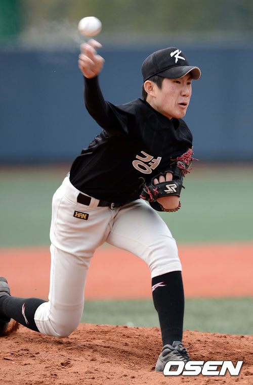 30일 오후 서울 신월구장에서 열린 '2013 고교야구 주말리그' 서울고와 경동고의 경기 경동고 황선재가 역투하고 있다.