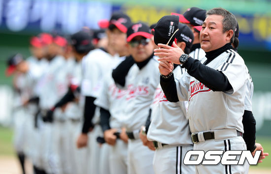 경기에 앞서 LG 김기태 감독이 입장해 팬들에게 인사를 하고 있다.