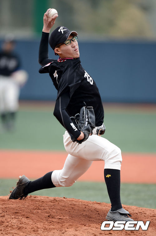 30일 오후 서울 신월구장에서 열린 '2013 고교야구 주말리그' 서울고와 경동고의 경기 5회초 경동고 이호중이 마운드에 올라 역투하고 있다.