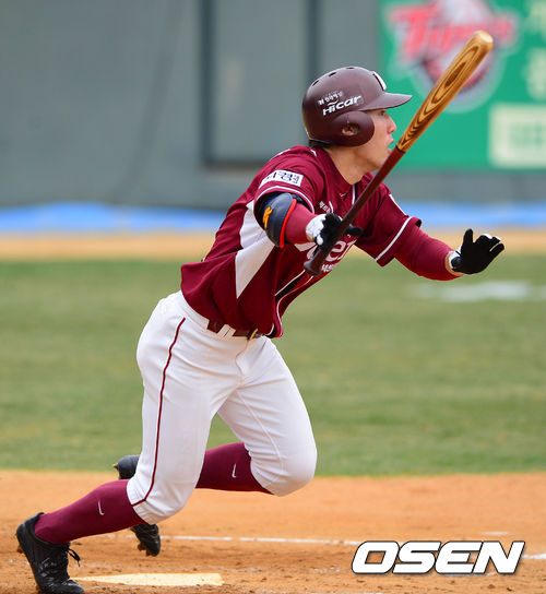 30일 오후 광주 무등구장에서 열린 '2013 한국야쿠르트 세븐 프로야구' KIA 타이거즈와 넥센 히어로즈의 경기 2회초 1사 만루 넥센 서건창이 선취 1타점 적시타를 날리고 있다