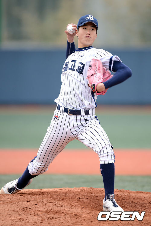 30일 오후 서울 신월구장에서 열린 '2013 고교야구 주말리그' 서울고와 경동고의 경기 서울고 박윤철이 역투하고 있다.