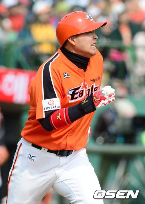 30일 오후 부산 사직구장에서 열린 '2013 한국야쿠르트 세븐 프로야구' 롯데 자이언츠와 한화 이글스의 경기 3회초 2사 1,3루 김태완이 1타점 적시타를 치고 달리고 있다.