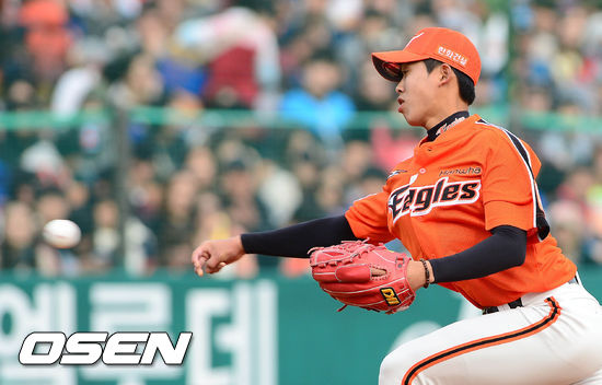 30일 오후 부산 사직구장에서 열린 '2013 한국야쿠르트 세븐 프로야구' 롯데 자이언츠와 한화 이글스의 경기, 임기영이 역투하고 있다.