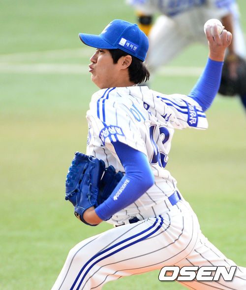 6회초 삼성 이우선이 힘차게 공을 던지고 있다.