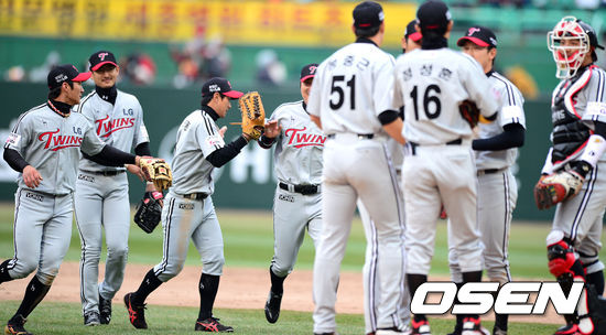 경기후 LG 선수들이 승리를 기뻐하고 있다. /jpnews@osen.co.kr