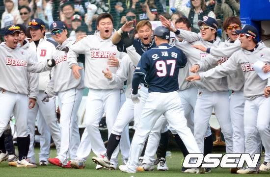 두산은 30일 대구구장에서 열린 원정 경기에서 오재원과 김현수의 그랜드 슬램을 바탕으로 삼성을 9-4로 꺾었다. 3년 연속 개막전 선발 중책을 맡은 두산의 외국인 에이스 더스틴 니퍼트는 6이닝 7피안타(1피홈런) 3볼넷 2탈삼진 4실점(3자책)으로 시즌 첫 승을 신고했다.
