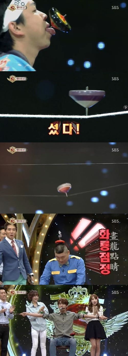 이 밖에도 이날 다케다 씨는 광희의 신체에 총 7개의 팽이를 올리는 퍼포먼스를 펼쳐 큰 박수를 받았다.