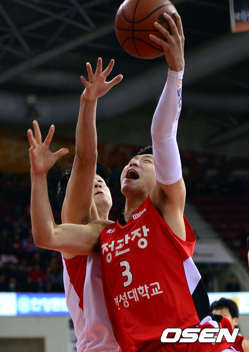 30일 오후 안양 실내체육관에서 열린 'KB 국민카드 2012-2013 프로농구' 6강 플레이오프 5차전 안양 KGC와 고양 오리온스의 경기 1쿼터 KGC 이정현이 레이업슛을 시도하고 있다.