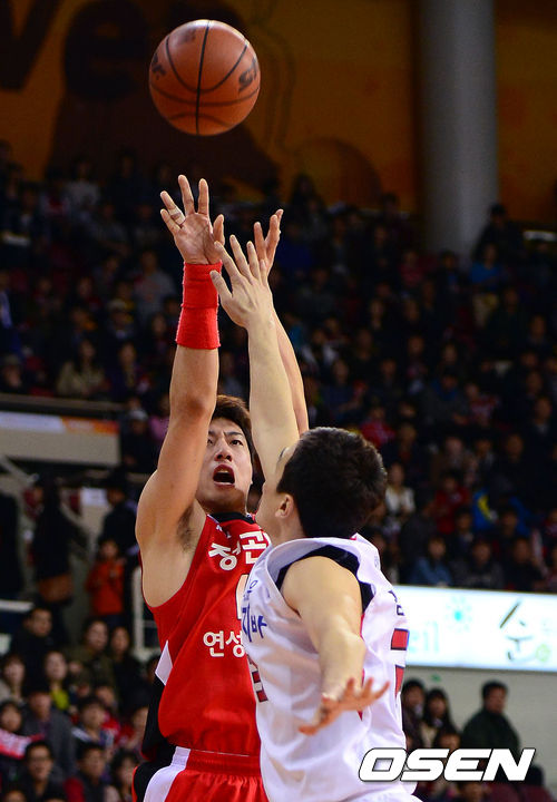 30일 오후 안양 실내체육관에서 열린 'KB 국민카드 2012-2013 프로농구' 6강 플레이오프 5차전 안양 KGC와 고양 오리온스의 경기 1쿼터 KGC 양희종이 점프슛을 시도하고 있다.